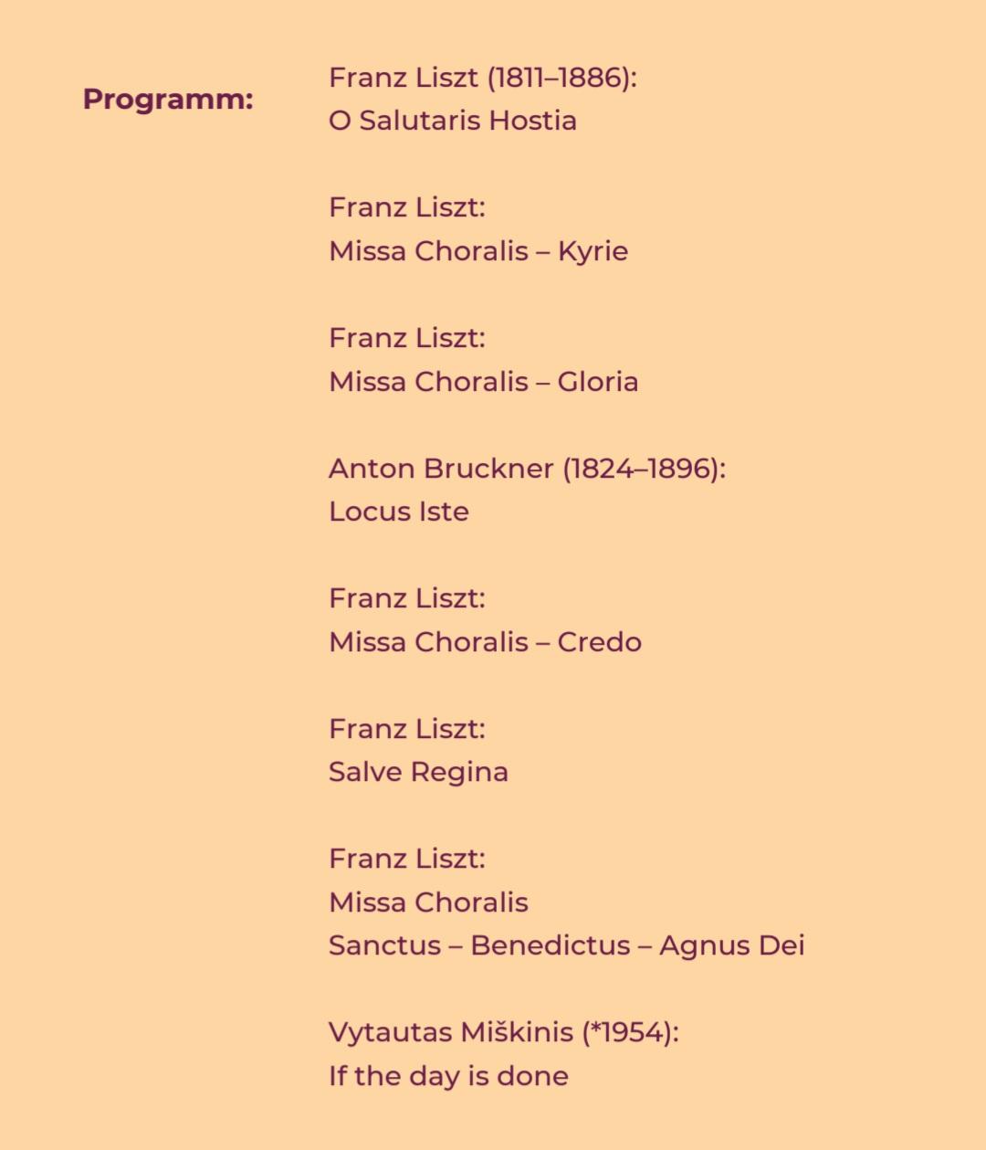- 21.06.1987 Feldkirch, „Missa für gem. Chor und Orgel“ Bruckner.